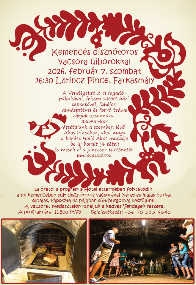 2026. február 7. szombat 16.30-tól a hotel mellett található Lőrincz Pince fedett teraszán
