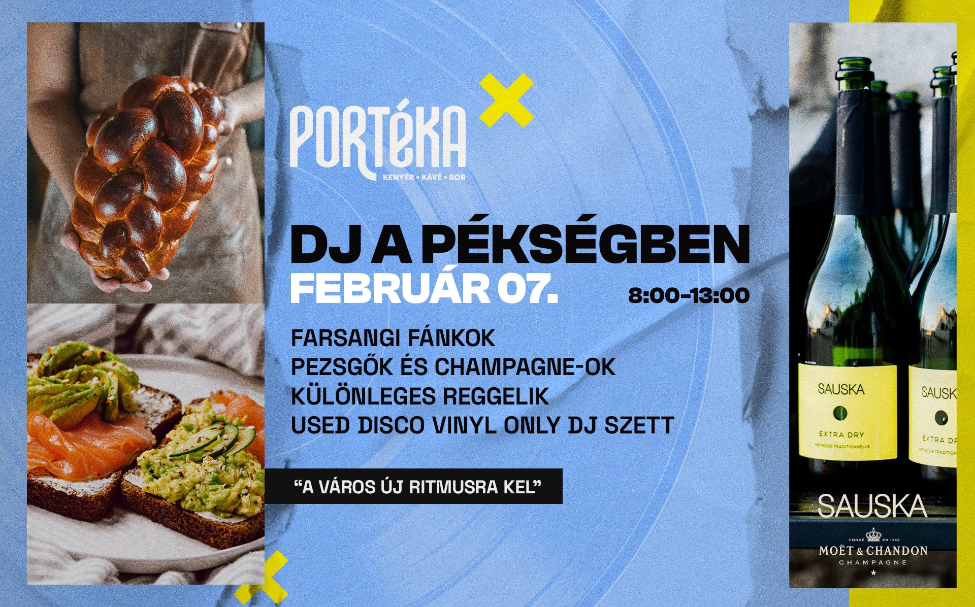 Az év első dj a pékségben eseményével a farsangra hangolódunk. Február 7 én reggel a Portékában összeér a friss pékáru illata, a különleges reggelik hangulata és a bakelit sercegése. Lesznek kézműves farsangi fánkok, pezsgők és champagne-ok, mellé pedig az a laza délelőtti vibe, amit már ismertek és vártok.