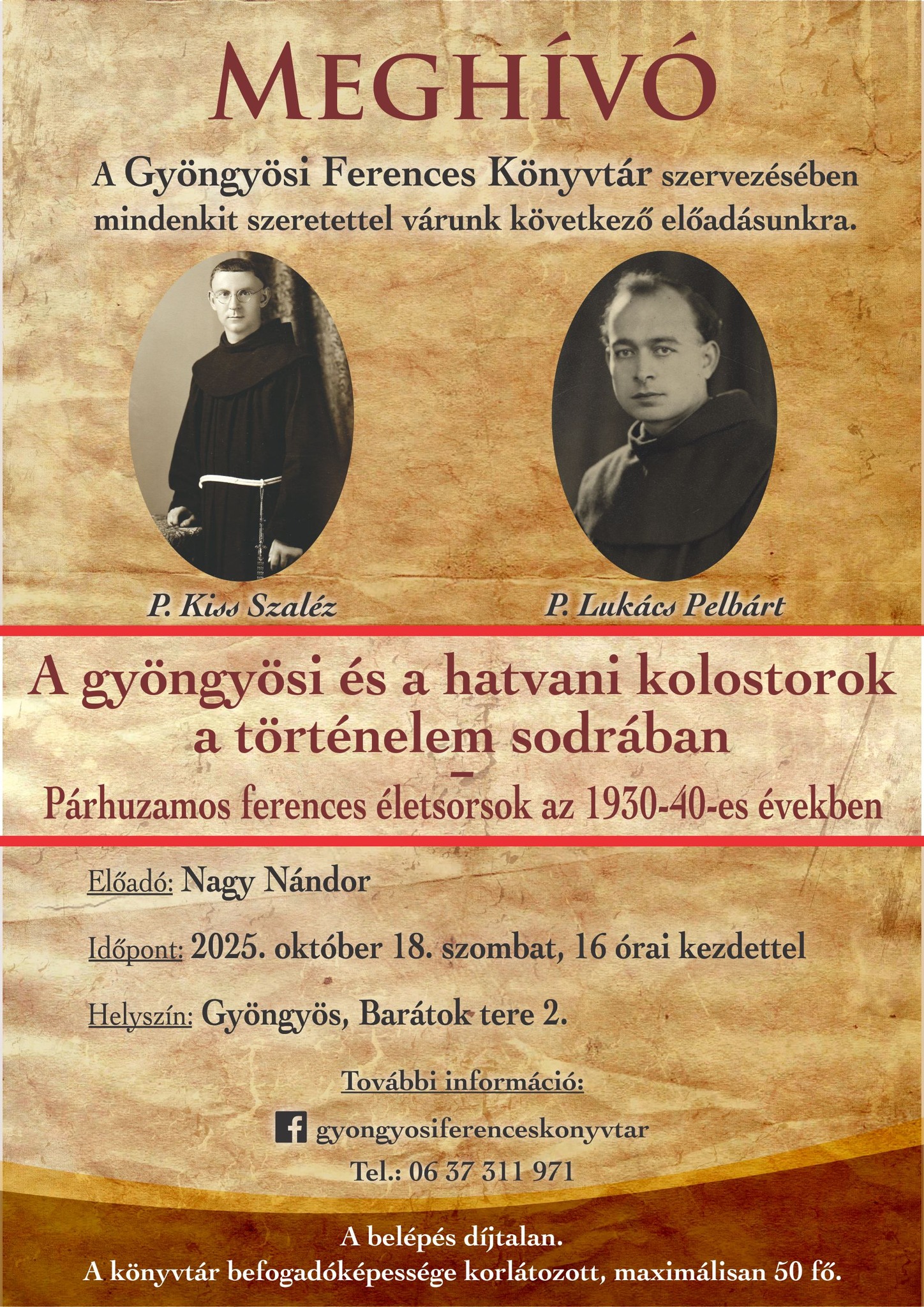 Nagy Nándor tart 2025. október 18-án, szombaton 16 órai kezdettel előadást a Gyöngyösi Ferences Könyvtárban.A belépés ingyenes.