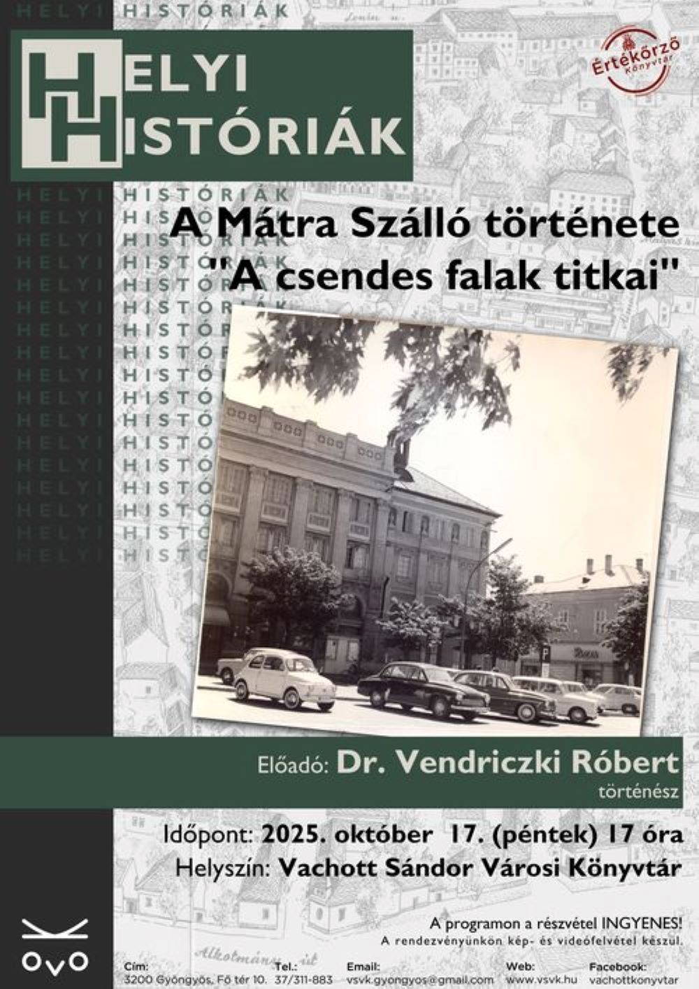 Dr. Vendriczki Róbert történész előadása: A Mátra Szálló története – A csendes falak titkai.