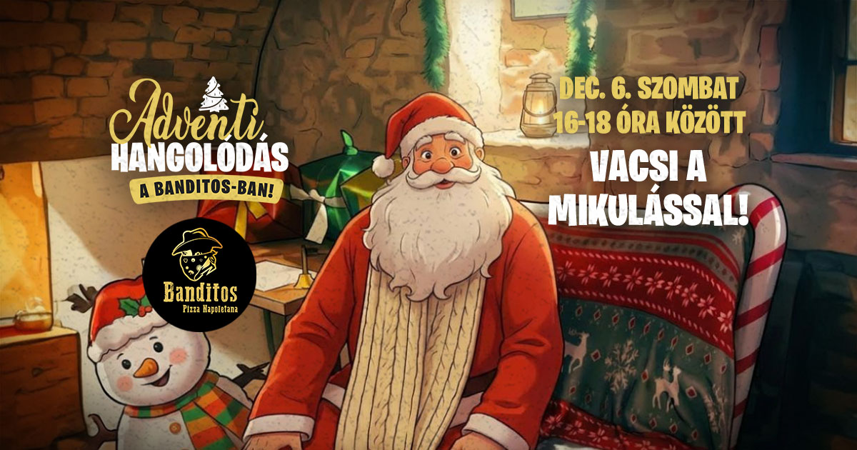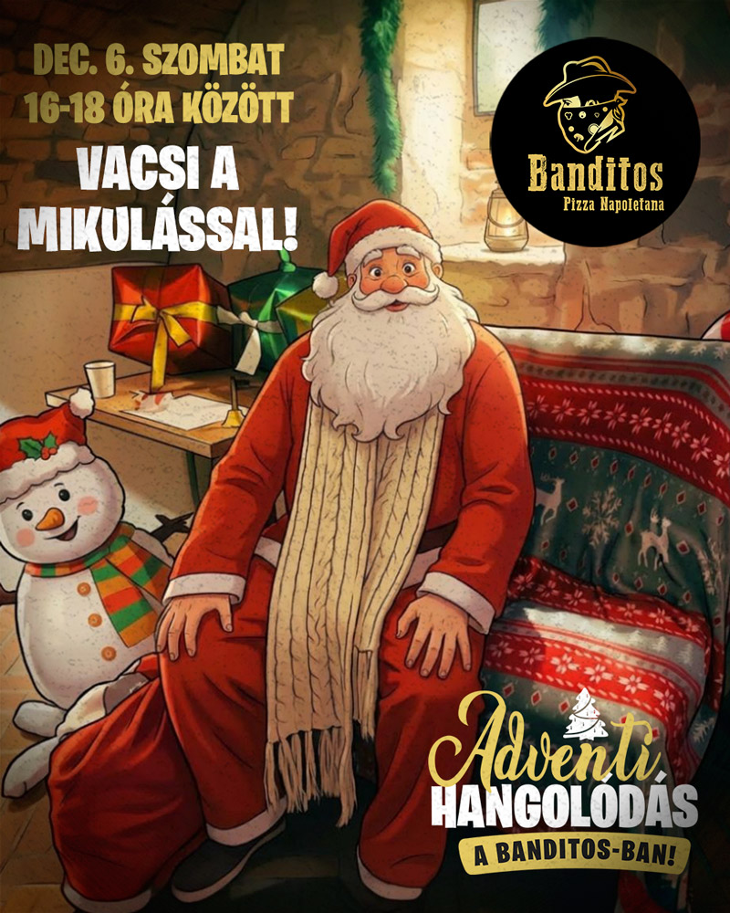 Dec. 6-án szombaton 16-18 óra között különleges vendég érkezik a Banditosba: megérkezik a Mikulás, aki apró ajándékokkal, forró teával és egy nagy mosollyal kedveskedik a legifjabb Vendégeknek.