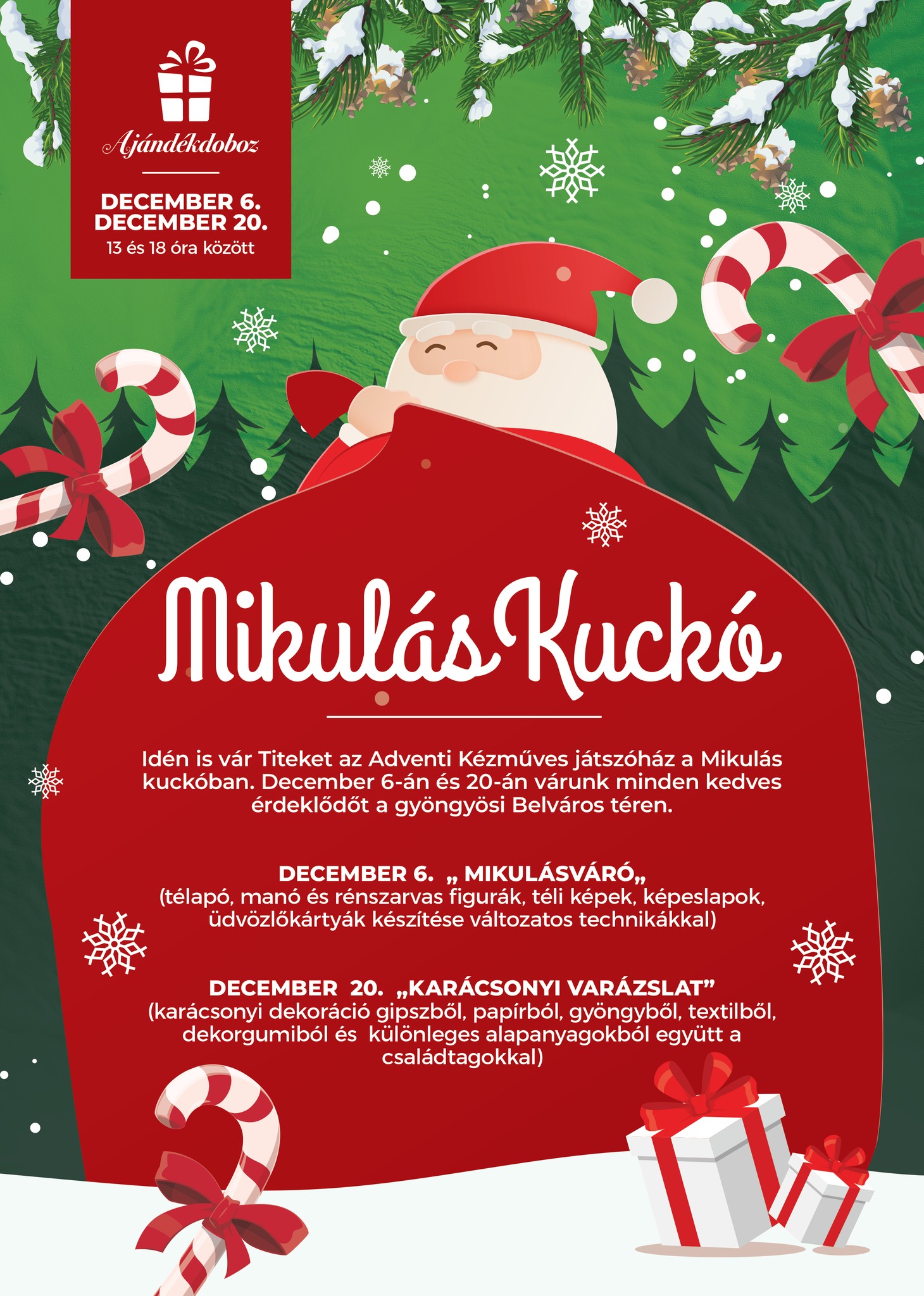 December 6-án Adventi Kézműves játszóház várja a gyerekeket és a családokat Gyöngyösön a Belváros téren.