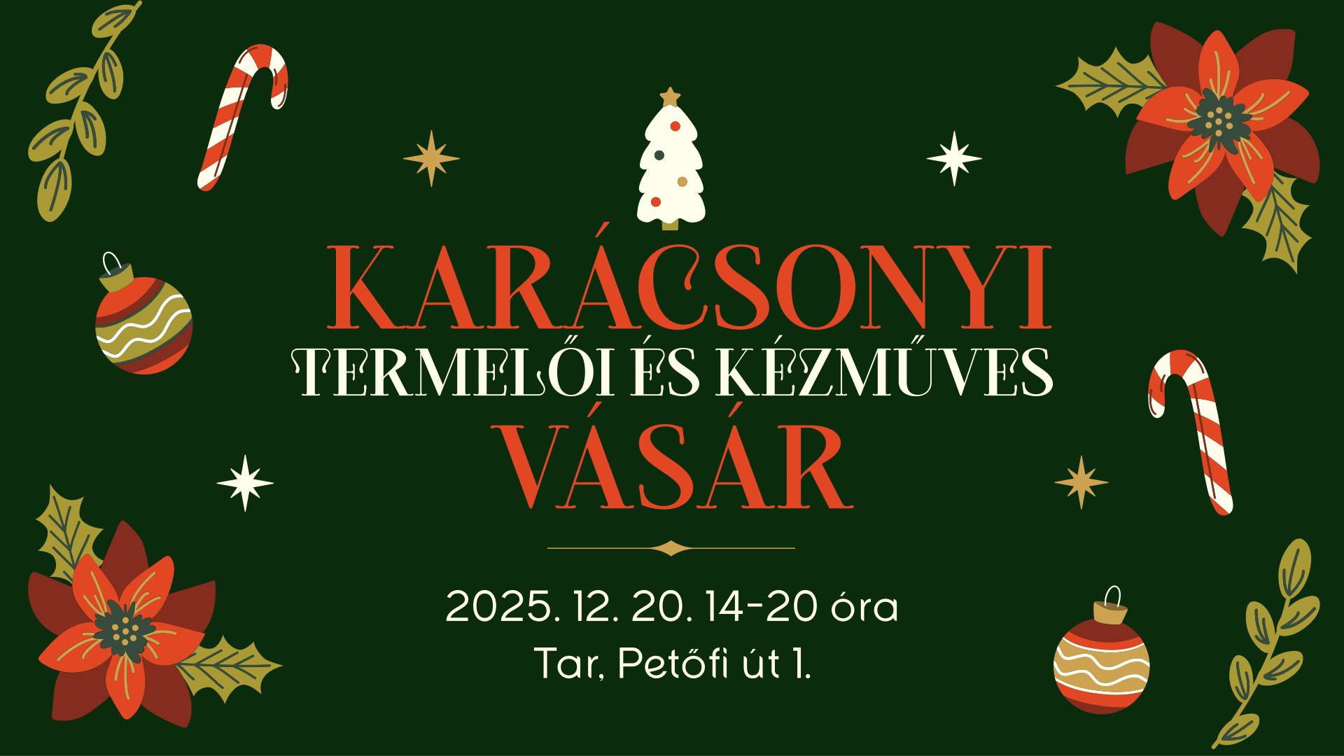 A TARtsunk Össze Egyesület sok szeretettel meghív minden érdeklődőt az első alkalommal megrendezésre kerülő Karácsonyi termelői és kézműves vásárra!
