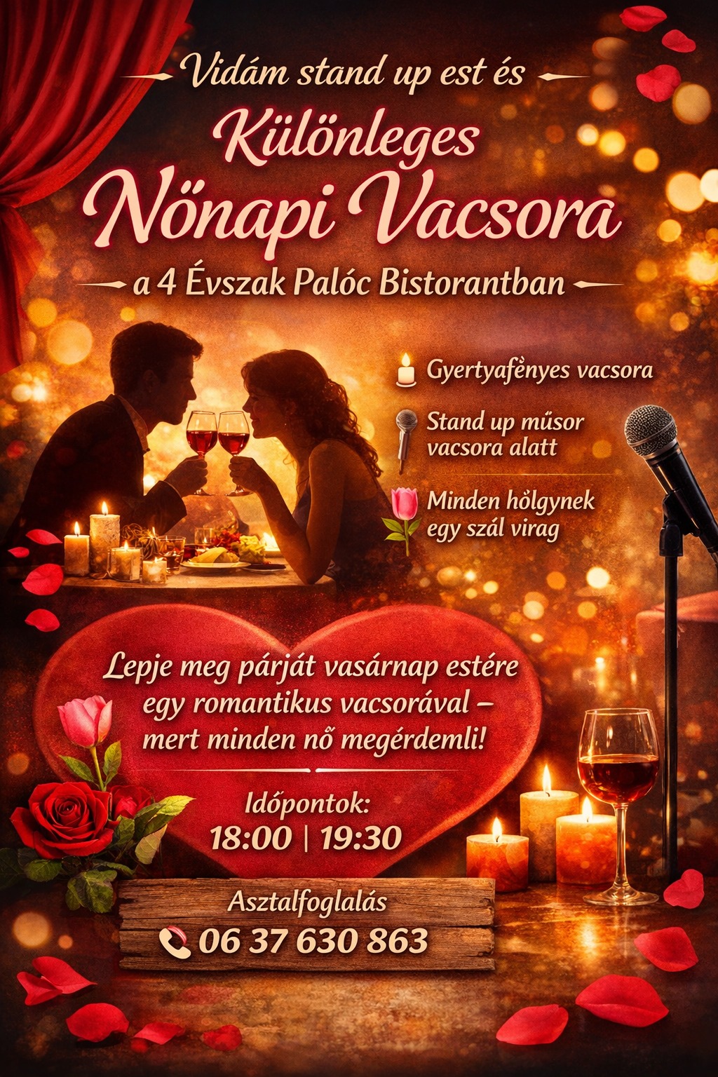 NŐNAPI STAND UP EST A 4 ÉVSZAK PALÓC BISTORANTBAN