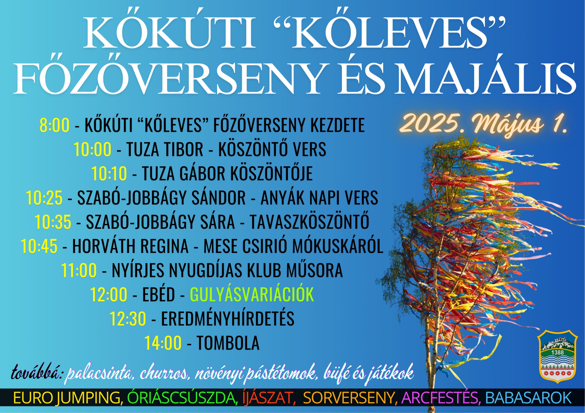 2025. május 1-én csütörtökön 10 és 16 óra között Kőkúton a Klub Könyvtár előtti parkban várnak mindenkit szeretettel!